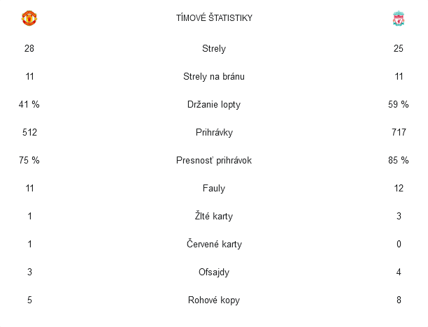 Domáci Red Devils vstúpili do zápasu lepšie a už v 10. min skóroval po dorážke McTominay, Liverpool potom +/- ovládol hru a v závere I. polčasu 2 gólmi (A. Mac Allister a Salah) za necelé tri minúty duel otočil.
