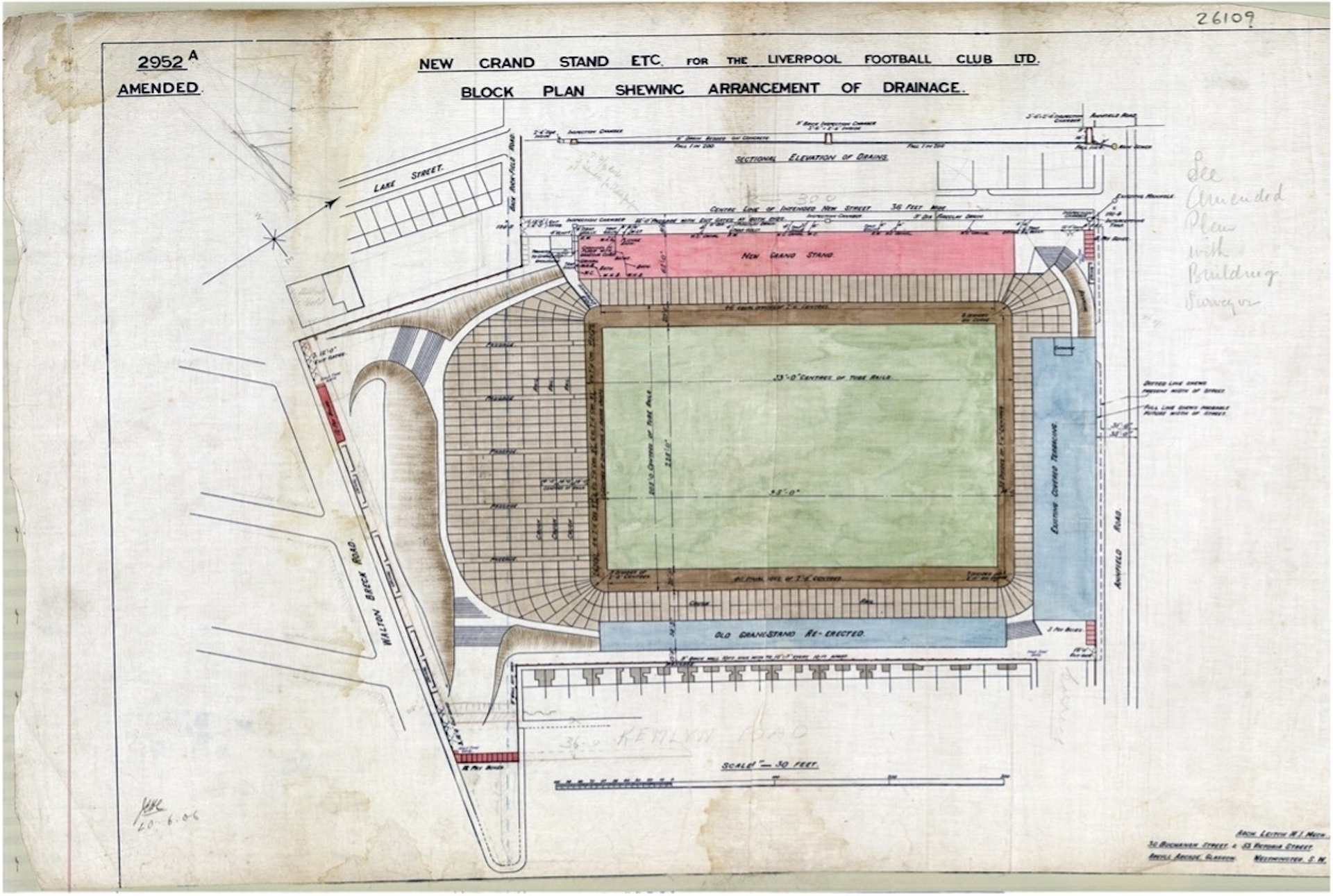 Ambiciózním projektem přestavby stadionu byl pověřen opět glasgowský inženýr Archibald Leitch. Stadion byl po konci sezóny 1905/1906 (ve které vyhrál Liverpool svůj druhý ligový titul) kompletně uzavřen.